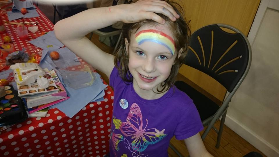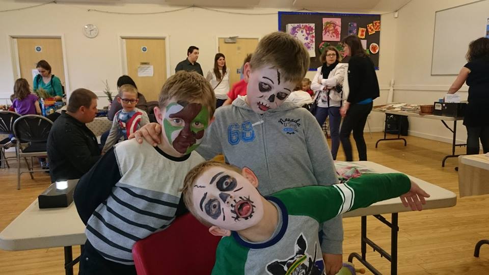 W Thanington bawiły się głównie polskie rodziny związane z naszą szkołą sobotnią, ale warsztaty były otwarte dla każdego, więc i inni przybyli. Malowaliśmy jajka gotowane, zgodnie z polską tradycją, robiliśmy kolorowe palmy i koszyczki, wycinaliśmy i ozdabialiśmy wielkanocne kształty z kolorowej ciastoliny, malowaliśmy twarze. Był też kiermasz książek polsko- i anglojęzycznych.  Mieliśmy też domowe ciasta, które upiekły dla nas zaprzyjaźnione mamy oraz wyśmienite babeczki ofiarowane nam przez Mr. Meringue. Mr Meringue to nowy polski biznes, pieczenie ciast i tortów, które sa REWELACYJNE! Jeśli nie mieliście okazji spróbować, zapraszam Was na stronę Sebastiana, który nie tylko piecze wspaniale, ale i pięknie ozdabia swoje torty i babeczki. Do tego używa naturalnych barwników:)